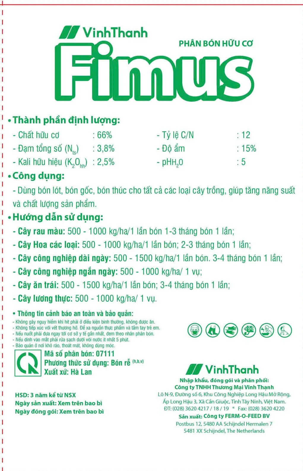 Phân hữu cơ khoáng Vinh Thanh Fimus NPK 4-2-3 là dòng phân bón cao cấp nhập khẩu từ Hà Lan, được sản xuất bằng công nghệ hiện đại châu Âu, mang lại nguồn dinh dưỡng cân đối và an toàn cho cây trồng.